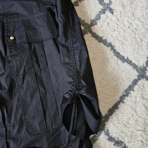 size 4. 3/4 sleeve.with ruching.gold buttons. some stretch to fabric. lightweight. Great quality and condition
