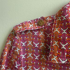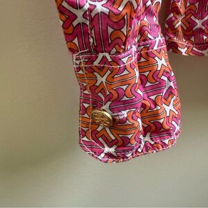 Tory Burch button down pink and orange Blouse logo buttons Size 6