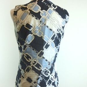TORY BURCH BLACK BLUE CHAIN SLEEVELESS 100% COTTON TOP 4