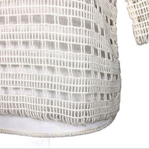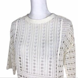 Tory Burch cream ladder crochet knit top fringe 3/4 sleeves XS