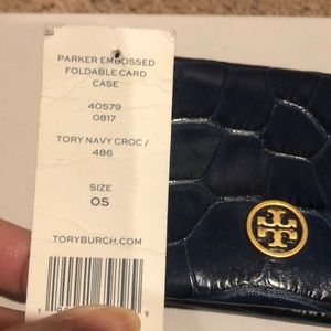 Tory Burch Credit card holder new no box sorry it’s a navy Croc it’s called a foldable card holder any questions just ask Thanks