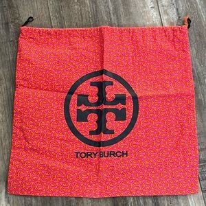 Drawstring pink and orange printed Tory Burch dust bag 13.5x16
