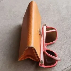 Tory Birch frames and case can add your own lenses, arms of glasses worn/discoloration and on frame Lens stretched and wear on case, sold as is
