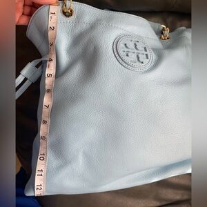 Tory Burch genuine leather tote bag w/braided gold hardware & adjustable chain