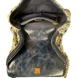 Tory Burch green multi soft fleming tweed convertible shoulder crossbody bag
