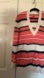 Tory Burch hooded V neck sweater, orange/navy/cream, cotton and viscose, size M