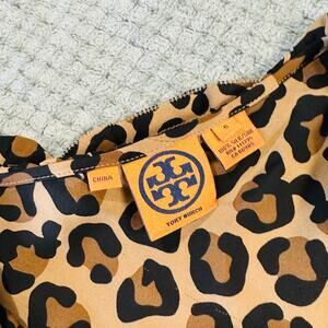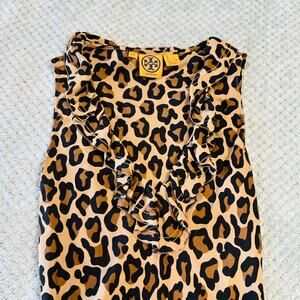 Tory Burch leopard cheetah print high neck y2k style flowy sleeveless silk tank top