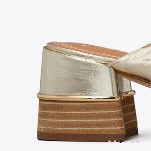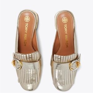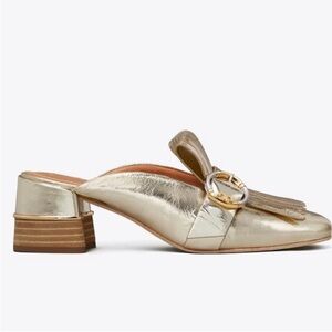 Tory Burch logo gold mule NEW