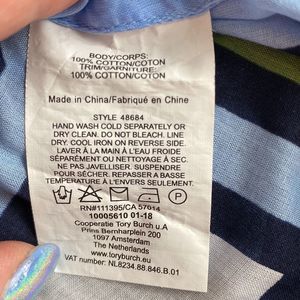 Tory Burch long sleeve notch neck printed tunic top, size XS.