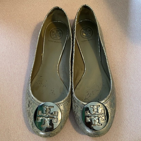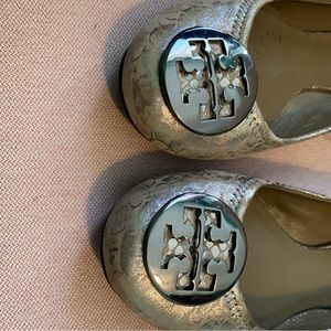 Tory Burch metallic python flats