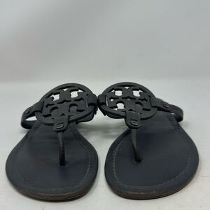 Tory Burch miller sandals womens 9.5 gray leather flip flop beach designer logo