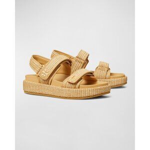 Tory Burch natural raffia Kira Woven Dual-Band Sport Sandals size 6.5 NEW