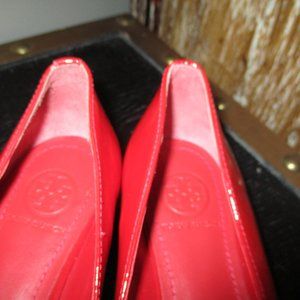 Tory Burch patent leather red peep toe wedge heels