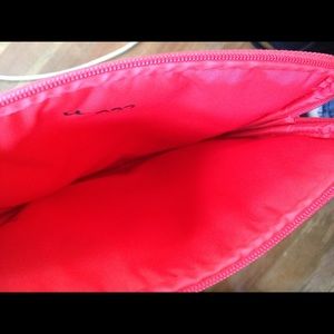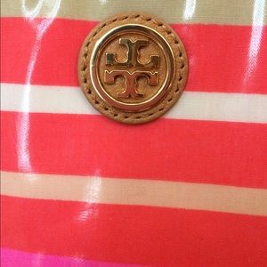 Super cute Tory burch pink striped iPad case with tan leather zipper pull. Like new apart from small marking outside and some writing inside - as shown in pics.