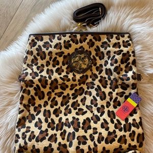 Tory Burch purse, Brand New, leopard print. Can wear as clutch or use straps to carry as cross body.