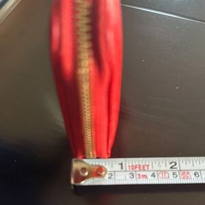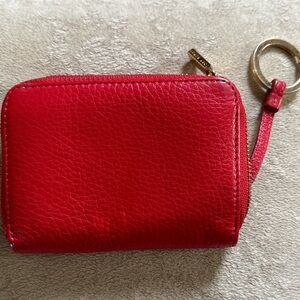 Tory Burch red zip around card coin paper holder with gold hardware key ring