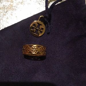 Tory Burch gold brand ring. Slightly used. Good condition. Size 6