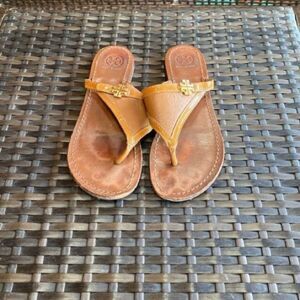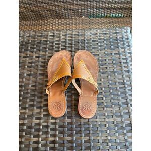 Tory Burch sandals, size 7 1/2 M in good preowned condition normal wear and tear. The soles of the shoes are dirty see pictures, but still wearable.