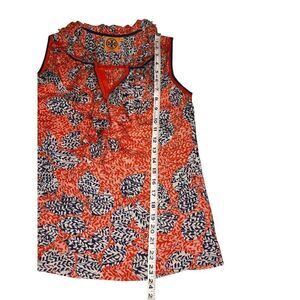 Tory Burch sleeveless ruffled blouse. Hook and eye neck closures.