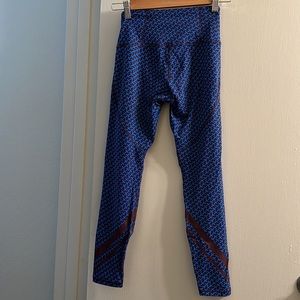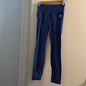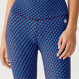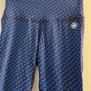 Tory Burch sport leggings in purple and blue with T print all over in like new condition no stains or rips