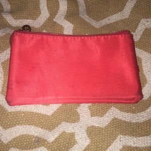 Red Tory Burch wallet. Used a couple times but still has lots of life left! It's missing the wristlet string.