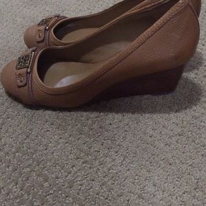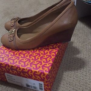 Only wore once! Brand new condition. Tory Burch Royal tan Ambrose 65mm wedge.