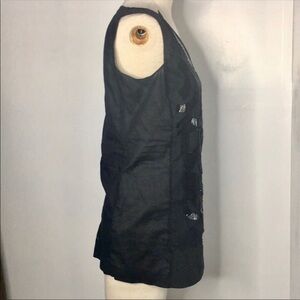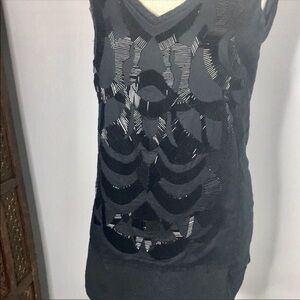 Beautiful black cotton V-neck sleeveless blouse from Tory Burch. Back is lightweight cotton and front is almost like tee shirt material with an absolutely stunning hand beaded smock in abstract design. It is black on black but the beads are vary shiny so they catch the light to draw the eye.