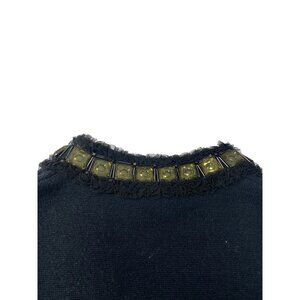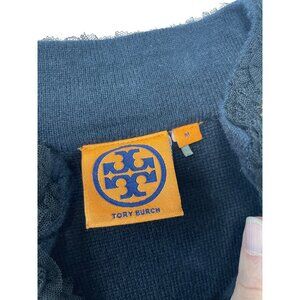 Tory Burch womans Charcoal Gray blue undertones black wool cashmere embelished S
