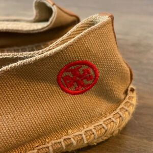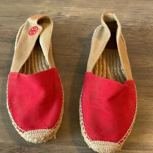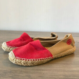 Tory Burch, women’s 7, tan and red summer espadrille flats, good condition