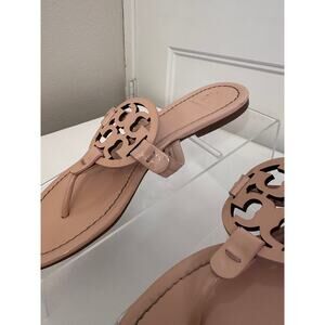 Tory Burch womens size 7.5 Miller Patent Leather Thong Sandals tan nude