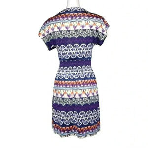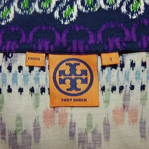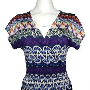 Tory Burch ARJETA Silk Dress Purple Blue Multicolor Cap Sleeve V-Neck Size Small
