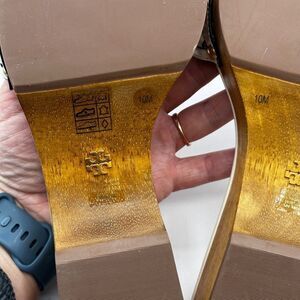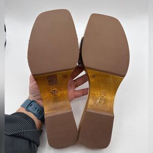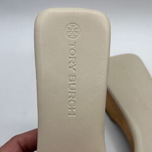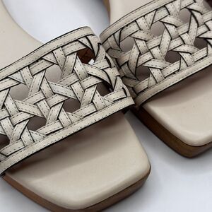 Tory Burch Basketweave Clog Sandals Cream Leather Square Toe Slip On Sz 10