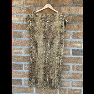 Tory Burch Beige Snake Print Silk Gold Sleeve Short Casual Dress in excellent condition