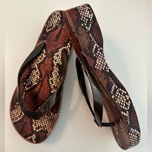 Tory Burch Brown Snakeskin Wedge Flip Flops