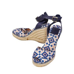 Tory Burch Criss Cross Blue and Orange Espadrille Wedges, Size 8