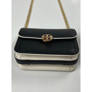 Tory Burch Duet Chain Convertible Shoulder Bag Black Ivory Gold 6.5 x 2.5 x 5 N0