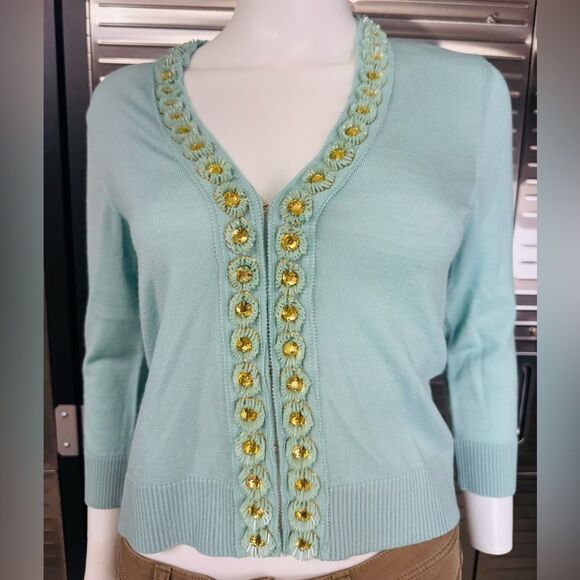 Tory Burch Green Embellished Women's Sweater Merino Wool XS