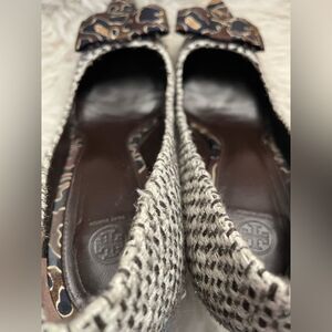 Tory Burch Heels Cleo Tweed Silk Bow Navy Mix Media 8.5