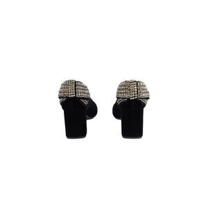 Tory Burch Josephine black velvet pumps with a heel height of 2.5”.