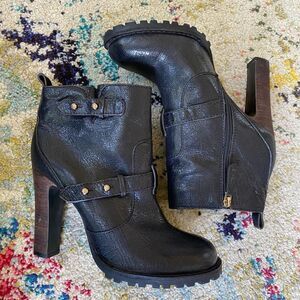 Tory Burch Landers Moto Leather Lug Ankle Booties