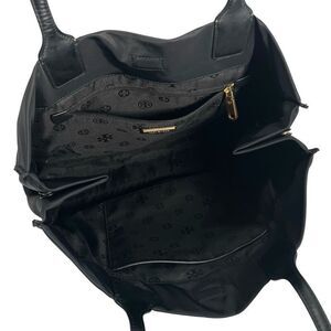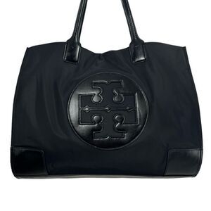 Tory Burch Large Tote Bag Black Ella Nylon Patent Leather Trim Handbag Logo