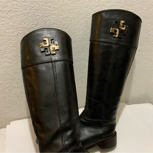 Tory Burch Lowell 2 Logo Brown Leather Knee High Riding Boot 7 M Excellent