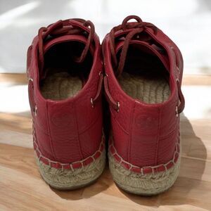 Tory Burch NEW Skipper Boat Grained Nantucket Red Leather Non-Slip Shoe $296 Si