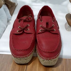 Tory Burch NEW Skipper Boat Grained Nantucket Red Leather Shoe $296 Authentic US Size 8.5