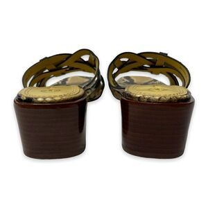 Tory Burch Pale Desert Roccia Basket Weave Leather Block Stacked Heel Size 7.5