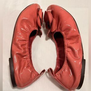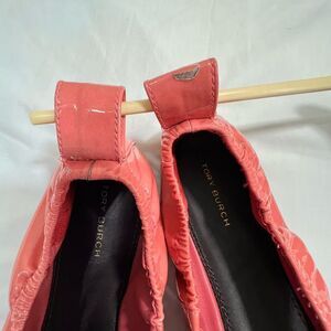 Tory Burch Pink Flower Ballet Flats Size 9 1/2 Patent Leather