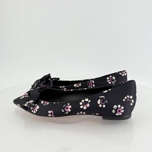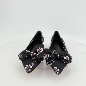 -Tory Burch Rosalind Ballet Flats Women's Size 5 Black Floral Satin Bow Pointed