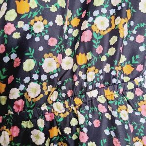 Currently on rent the runway, this dress is perfect for all seasons. Worn once and in like new condition, this floral shirt dress does run large. So this dress will fit a size M, for a slit over fit with belt perfect for a size S. Not a mini, but fits over the knee. Length 38", pit to pit 20", waist 16", which is and elastic waist.