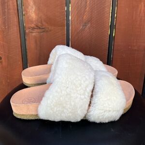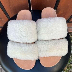 Tory Burch Sheldon Shearling Two Band Slide sandal size 7