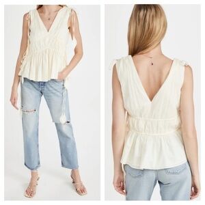 Sleeveless Smocked Peplum Top COLOR New Ivory size 0 Chic peplum top with smocked bodice.